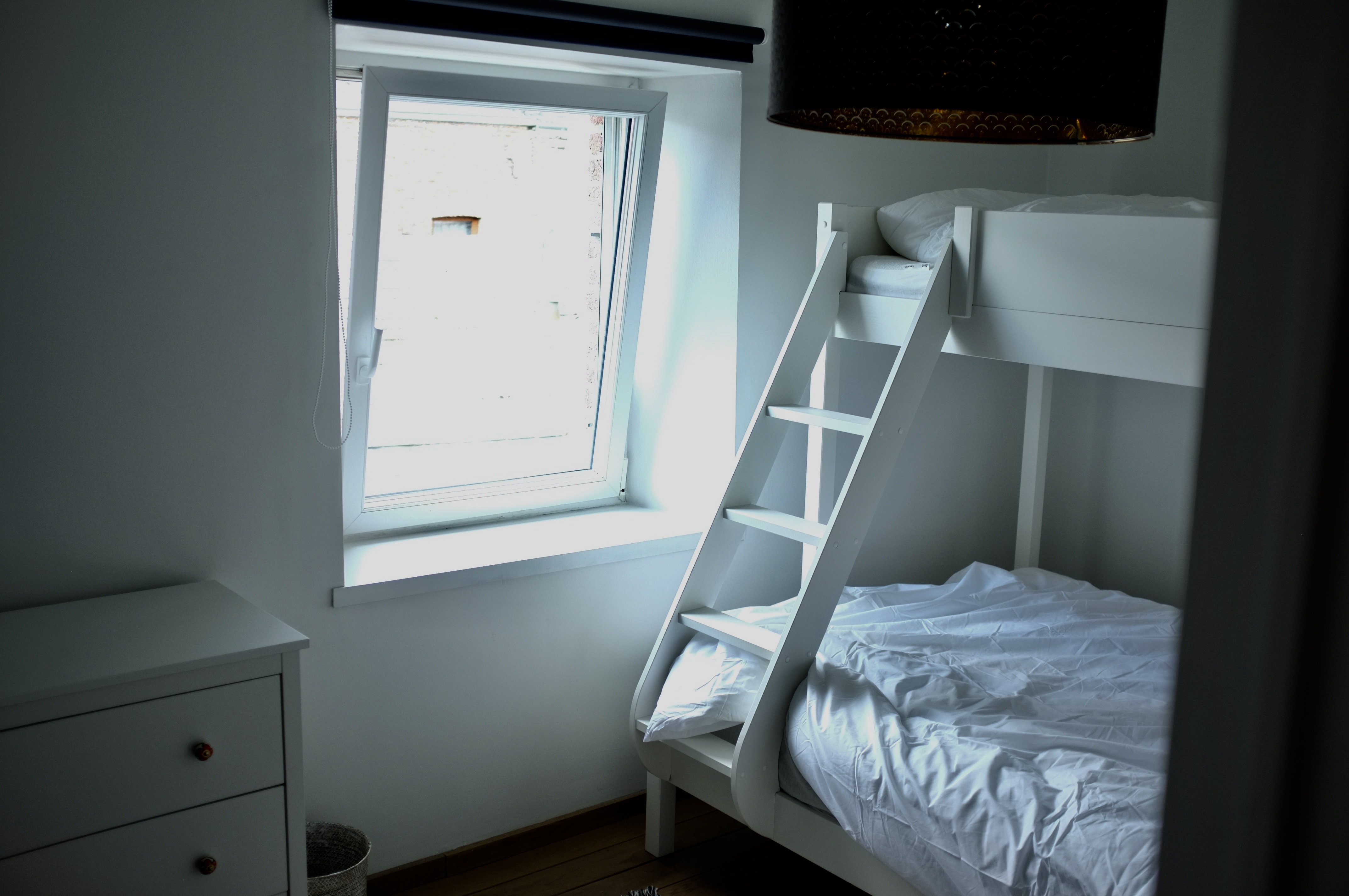 A l’étage, vous trouverez 3 chambres et une salle de bain commune avec baignoire et douche. Un lave-linge et un sèche-linge sont également à votre disposition. Les deux premières chambres sont équipées de lits doubles (1.80m et 1.60m) , la 3e chambre offre plusieurs possibilités de couchage car elle est équipée d’un lit superposé avec un matelas pour une personne en haut (90cm x 2m) et un matelas pour une à deux personnes en-dessous (1,40m de large).